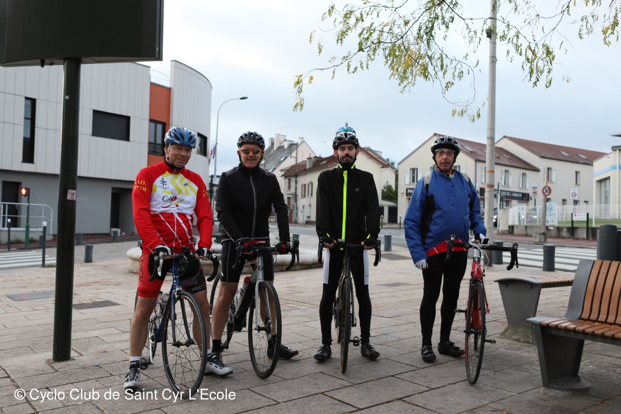 Nos courageux 4 cyclos partis pour une rando de 72 km. Temperature 9,5°et vent de SSO.