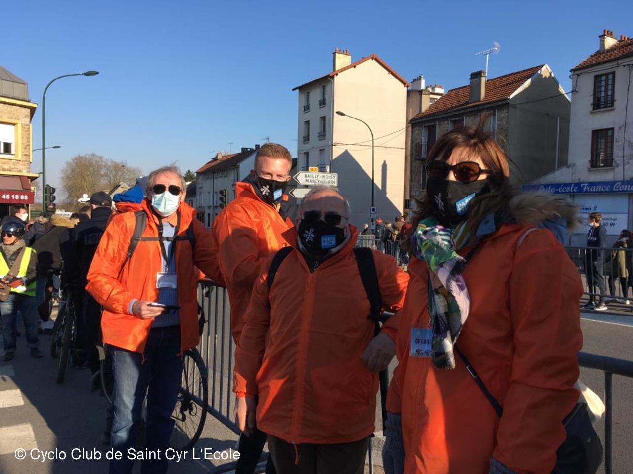 Dimanche 7 mars 10h rassemblement devant le cinéma "Les Yeux d'Elsa" des équipes de bénévoles pour l'organisation du départ de Paris-Nice. Le CCSCE était très bien représenté, avec Matthieu, Jean Yves, Michel M, Christian D, Philippe P, Jacques, Béatrice et JeanClaude D. Philippe N qui devait être parmi nous à du déclarer forfait suite à un problème de santé.