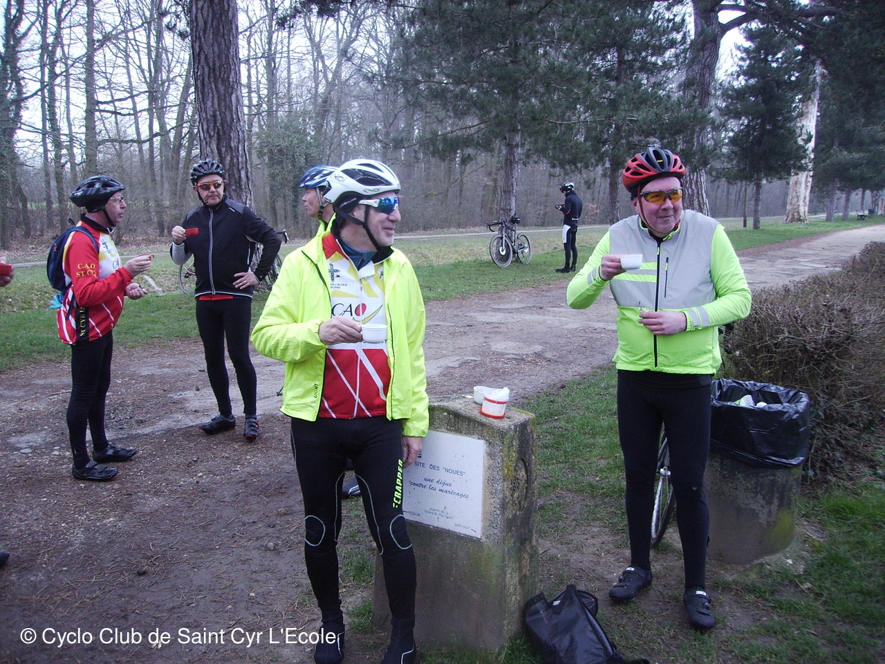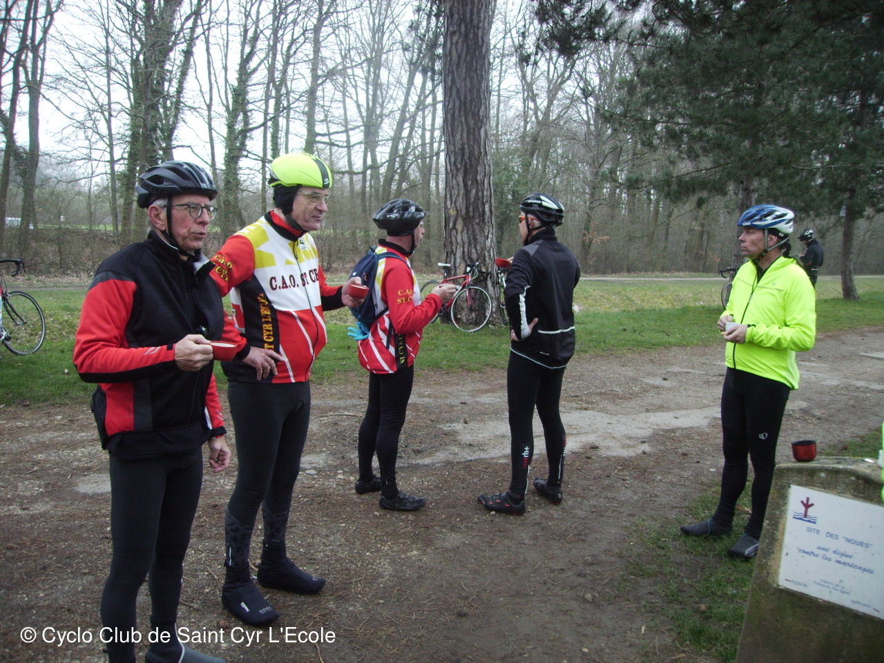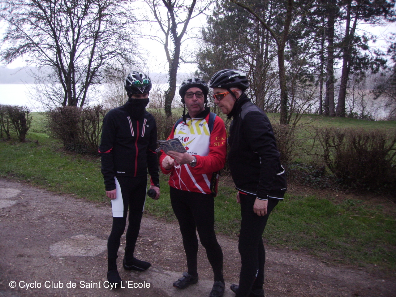Et voila tout ce petit groupe parti en direction de Buc, Chateaufort, Magny les hameaux, Buloyer, La Brosse et le Mesnil St Denis ou la décision est prise de faire une petite pose ravitaillement au bord de l'étang de la Noue.
