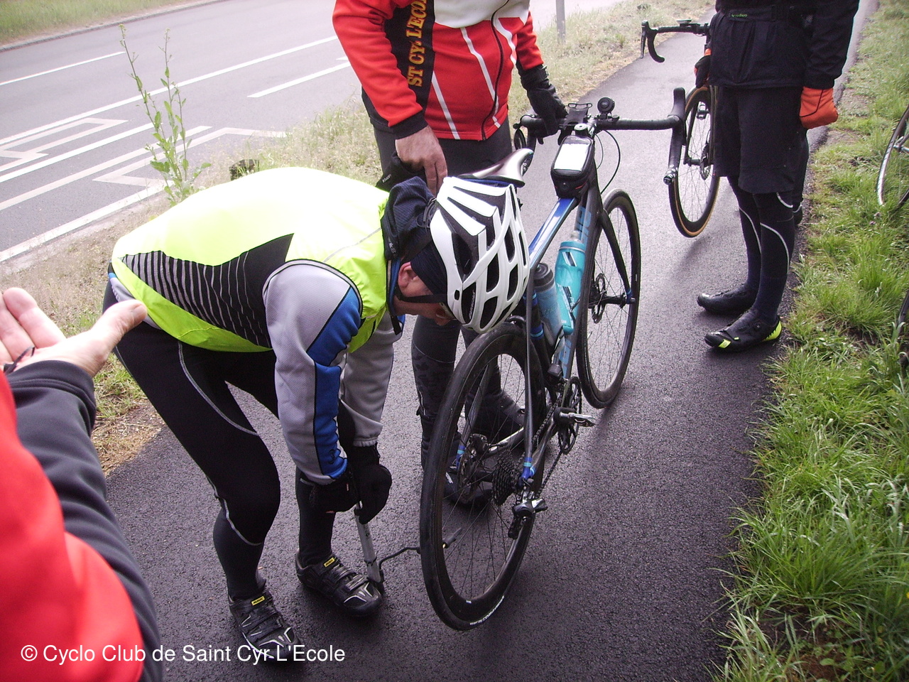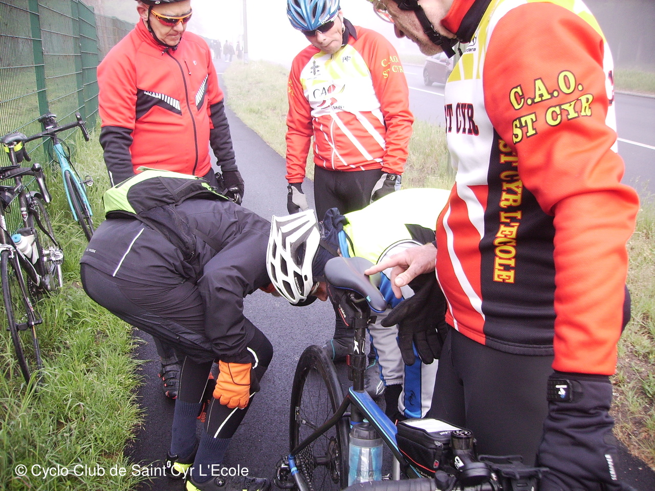 Le parcours s'est déroulé sans emcombre jusqu'à la Celle St Cloud ou Christian a voulu imiter Jacques en testant à son tour ma résistance de ma roue arrière. Petites égratignures qui je l'espère seront sans conséquences