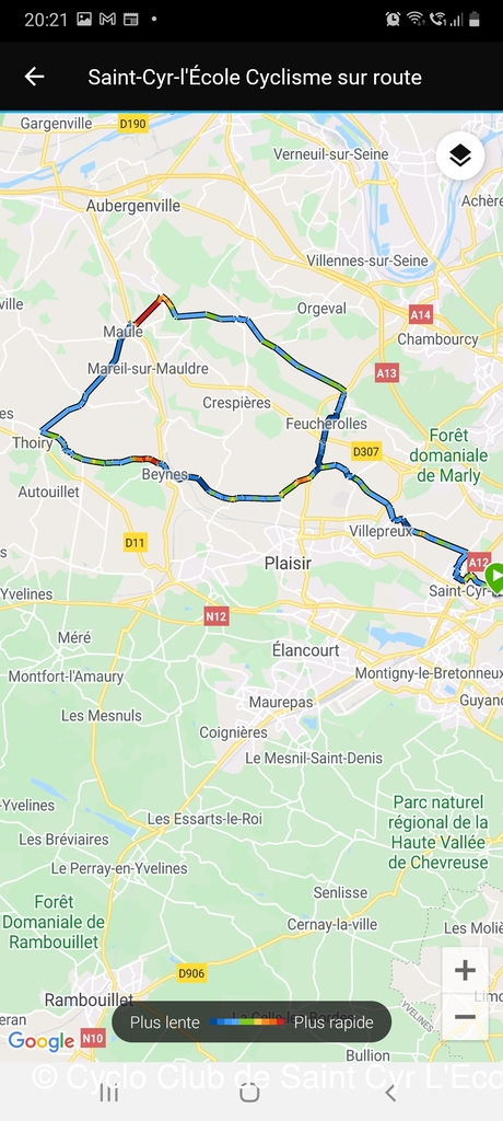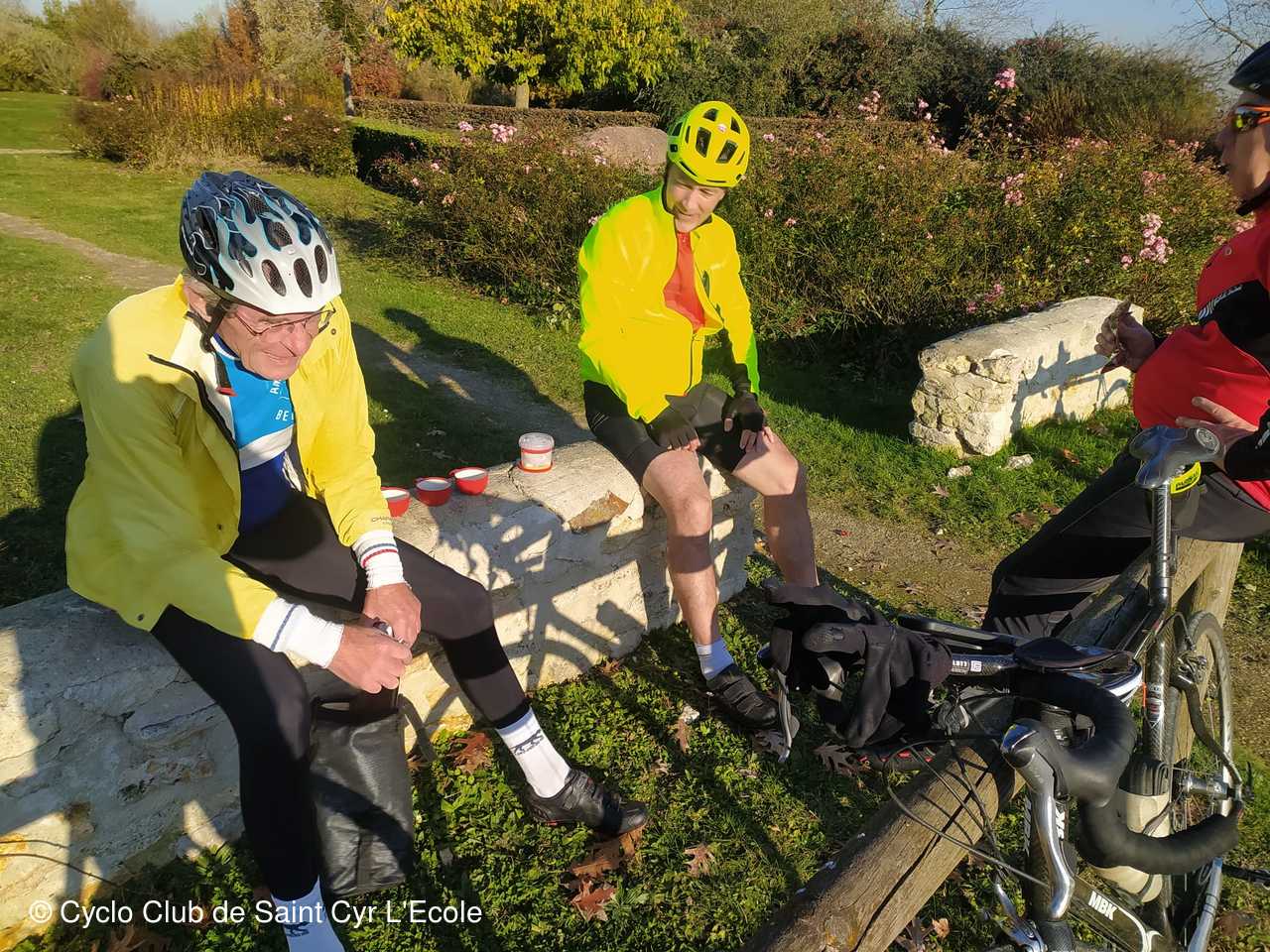 Après une bonne trentaine de km, une petit pose ravitaillement dans le parc des Vignettes à Thoiry. Puis retour par Beynes et la cote du vol à voile après réparation de la crevaison de JC D à la sortie de Marcq et un retour sur St Cyr vers 16h30 - 16h 45