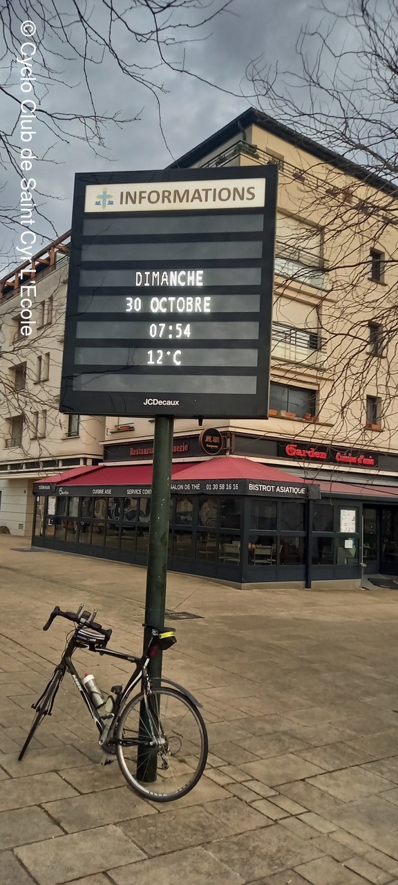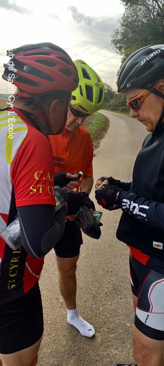 Dimanche 30 octobre, 8h à la fontaine, 5 cyclos présents : Jean Claude W, Sylvain J, Pascal T, Jean Yves M et moi même Jean Claude D.