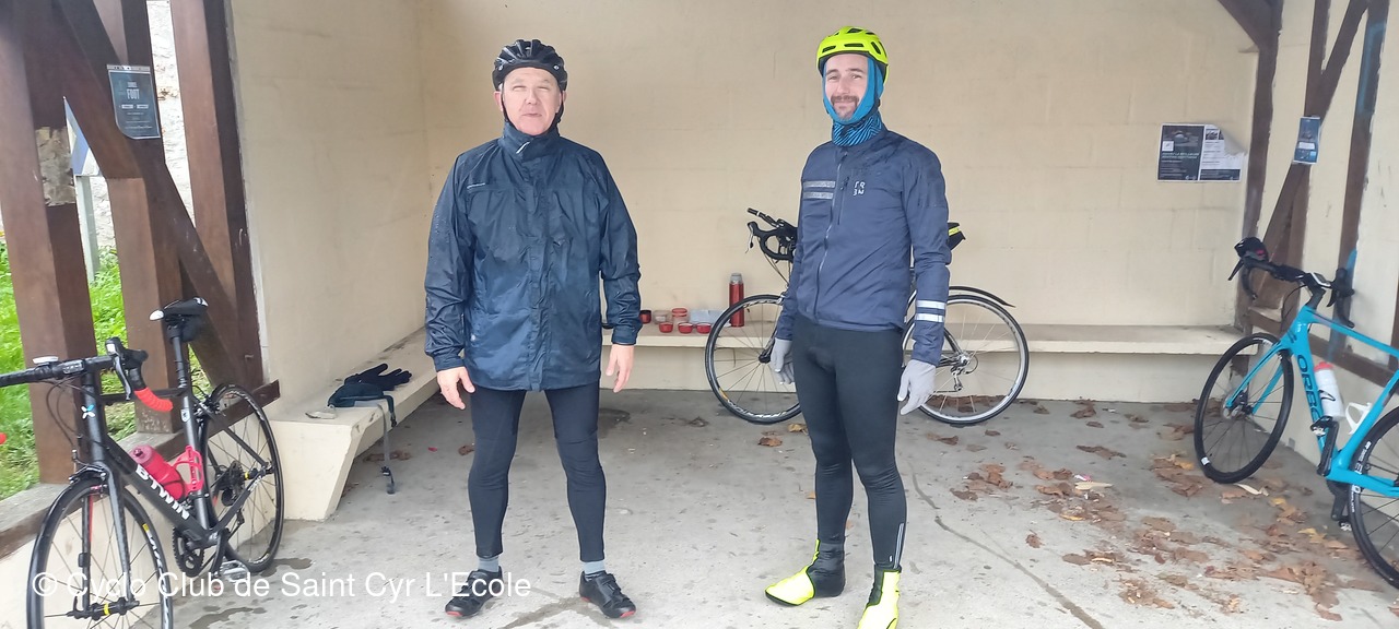 C'est donc à 3 que nous poursuivons le P11 vers St Germain de la Grange, Beynes, Marcq ou là, petit changement de temps avec l'apparition de la pluie qui nous à tenue compagnie jusqu'à Arnouville ou nous avons décider de nous abriter dans l'abribus et profiter pour de ravitailler et prendre un petit cafè bien chaud.