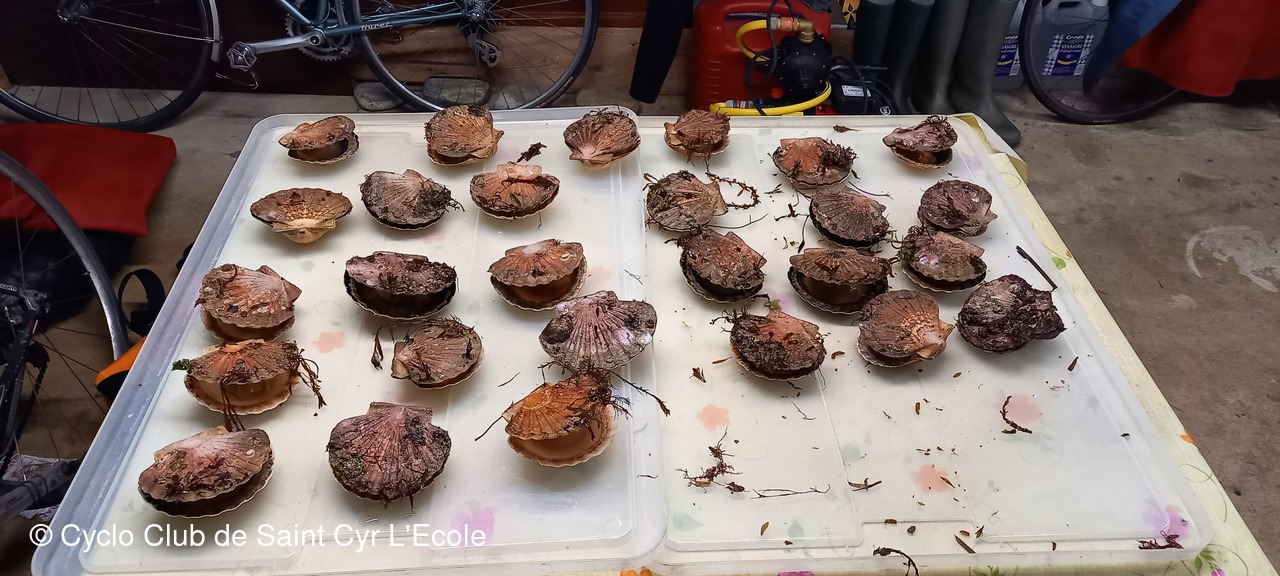 1h30 plus tard c'est la sortie de l'eau à 9° avec ce que j'ai récolter, 27 coquilles, manque 3 pour avoir ce dont on a le droit.