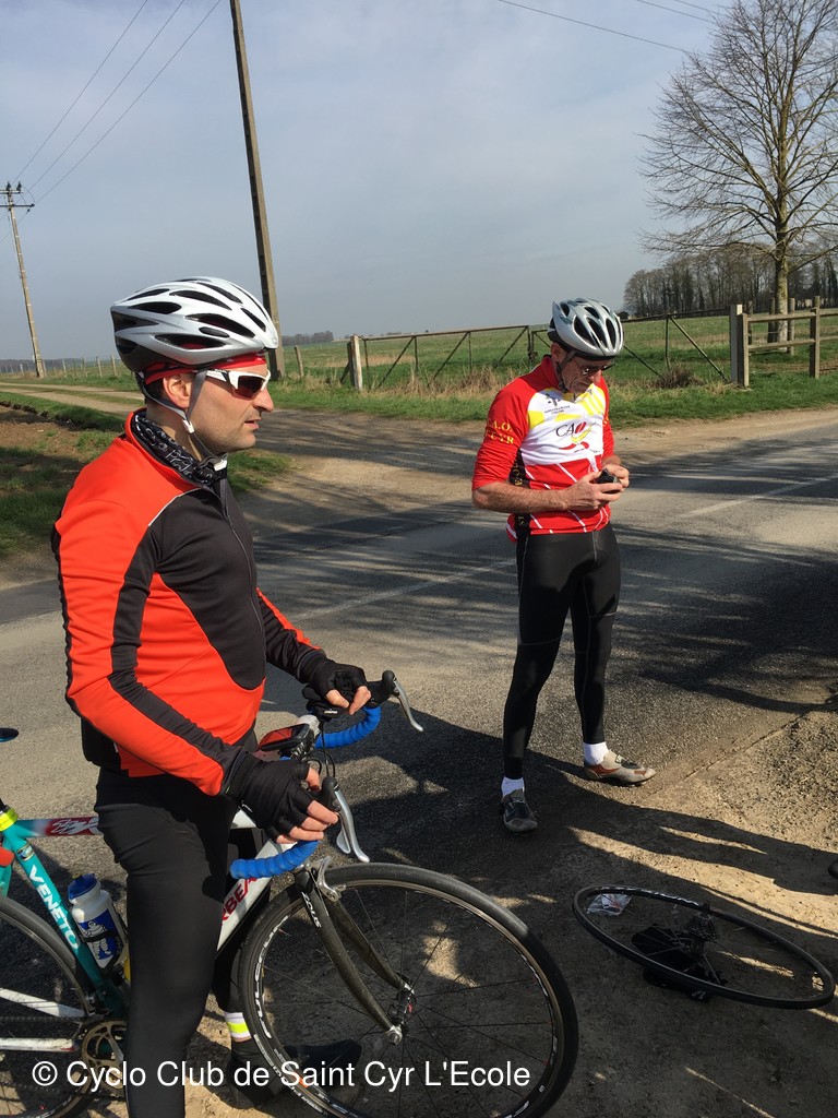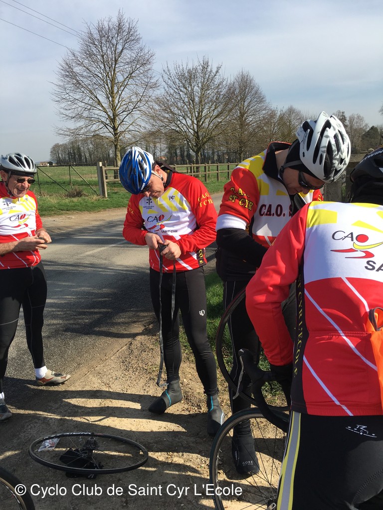 Tout allait bien jusqu'à une première crevaison de Christian et suivi de celle d'André Corbille vers la Maladrerie.